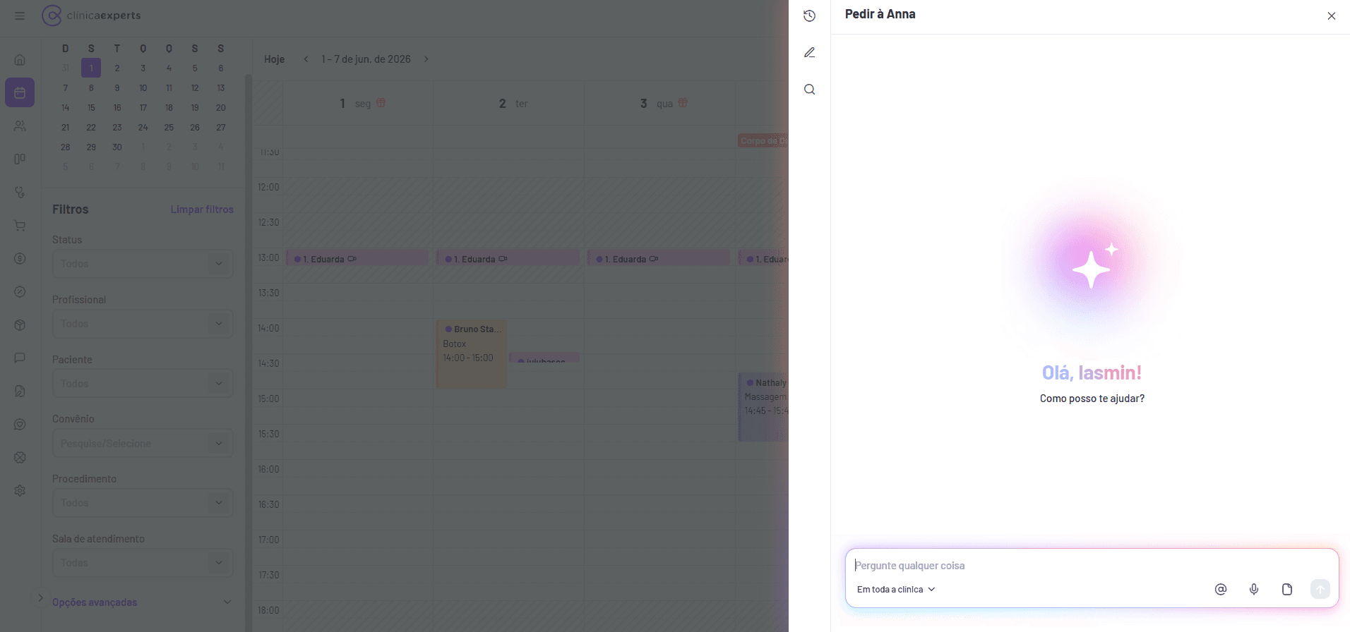 A IA do Clínica Experts, a Anna, também opera na agenda.