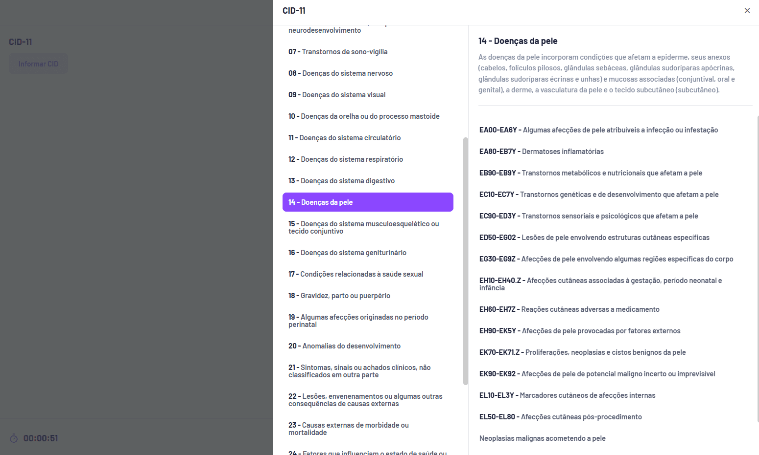 Para quem atua nas áreas da Medicina, disponibilizamos o CID-11, o sistema de padronização de códigos para doenças. Com essa funcionalidade, seus atendimentos e prontuários ficam ainda mais completos.